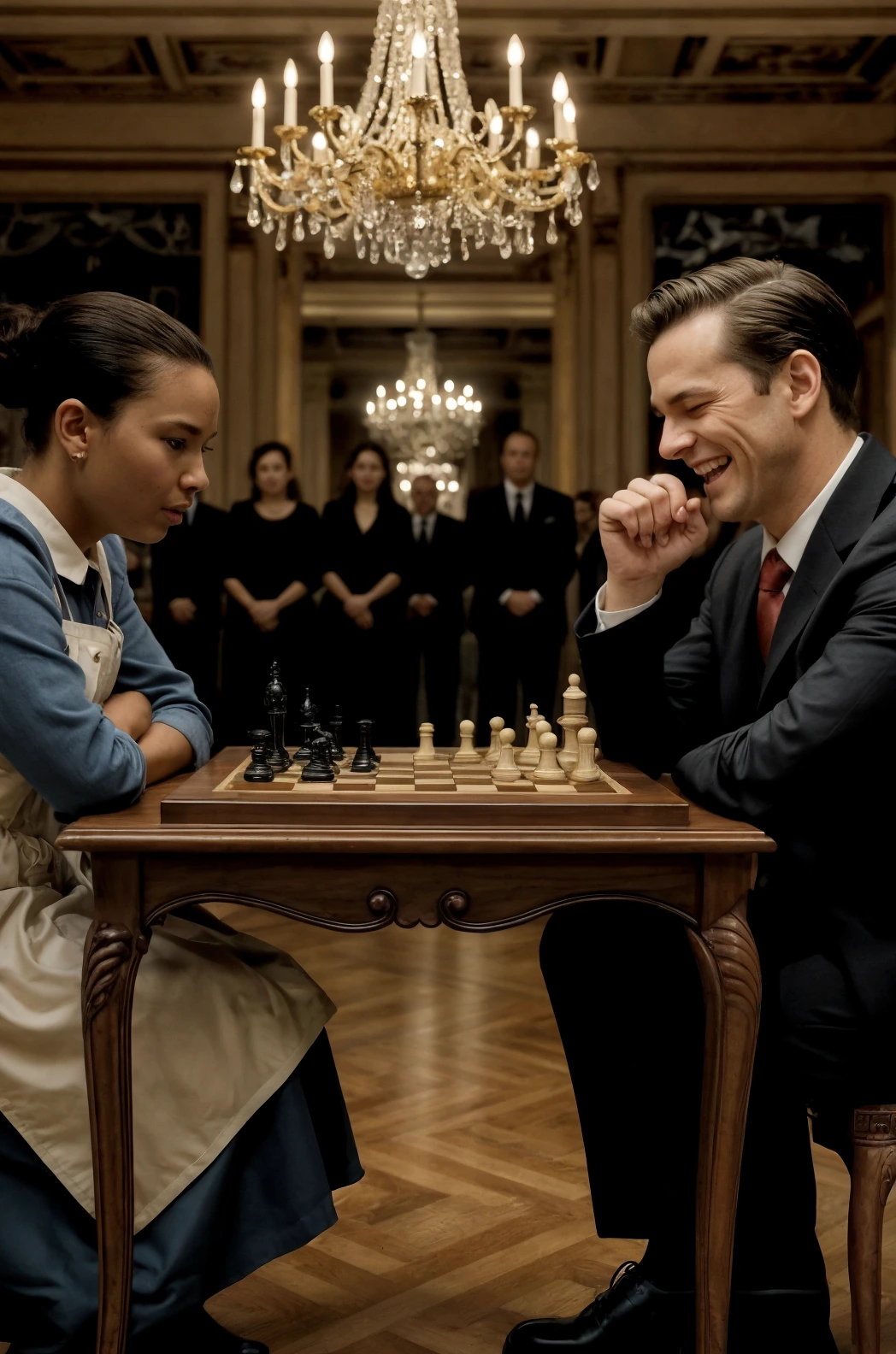 Le risate aumentarono. Un uomo imitò persino il gesto di spazzare il pavimento con una scopa immaginaria, provocando l’ilarità generale. Elena abbassò gli occhi per non mostrare il peso di quella vergogna. In quel momento la scacchiera non sembrava più un gioco, ma una trappola messa lì apposta per esporla al ridicolo.