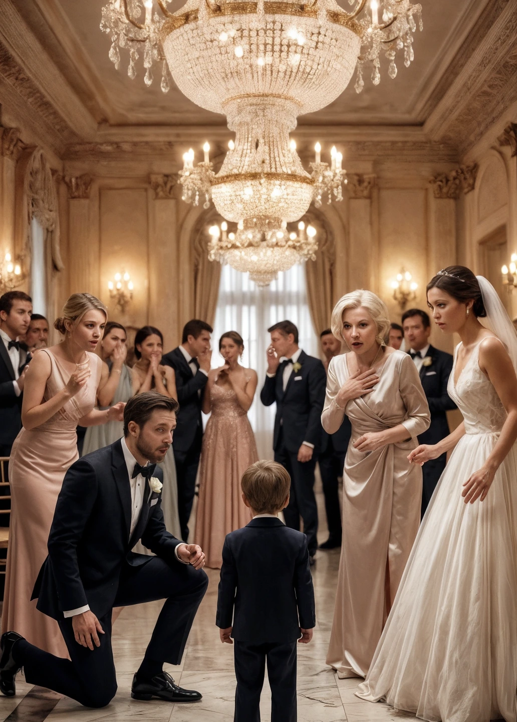 “Il giorno del nostro matrimonio, proprio mentre tutto sembrava perfetto, mia suocera ha fermato la cerimonia con un’accusa sconvolgente: sosteneva che il bambino che stavo crescendo non fosse figlio del suo amato figlio. In pochi istanti, la gioia si è trasformata in gelo, gli invitati sono rimasti senza parole e il mio futuro marito, invece di restare al mio fianco, è uscito dalla sala prima ancora che potessimo pronunciare i voti. Pensavo che quello fosse il momento più doloroso della mia vita. Mi sbagliavo. Perché anni dopo, durante un incontro del tutto inaspettato, mio figlio ha pronunciato una frase che ha lasciato tutti immobili, come se il tempo si fosse fermato.”